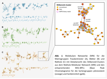 This project aims to isolate and characterize the antimicrobial natural substances from by-products of wine production and thus make a contribution to natural substance research and the valorization of wine by-products in equal measure. To this end, samples of the wine by-products are extracted and analyzed for their antimicrobial effect using a plate diffusion test. Molecular networking, a method based on mass spectrometry, is used to identify the active ingredients. This is used to visualize and evaluate similarities and differences in the chemical profile of the samples in order to be able to assign the bioactivity to a substance or group of substances. The bioactive natural substances will then be purified and chemically and biologically characterized. When selecting the raw materials, the focus is on sustainable fungus-resistant grape varieties (= PiWi grape varieties). These offer advantages with regard to the reduced use of pesticides in viticulture and possibly with regard to an improved spectrum of natural substances due to symbiotic microorganisms. Initial results show that the method offers new insights into the chemical properties and resistance mechanisms of PIWI grape varieties.