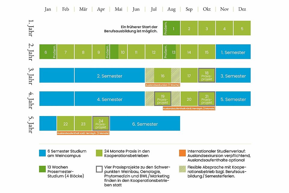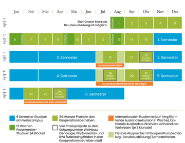 | Start of studies 1st semester | November | The lecture period deliberately begins in November after the fall phase in order to take into account the work peak in the wineries |