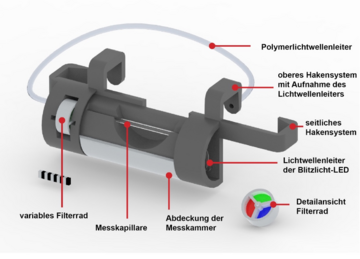 Le projet a permis de développer un photomètre portable qui peut être fabriqué à bas prix en combinant des diodes électroluminescentes comme source de lumière et un phototransistor comme capteur. Une utilisation flexible de l'appareil de mesure est assurée par le placement des éléments optiques sur des platines interchangeables. Le circuit de mesure développé garantit une mesure précise. L'utilisation intuitive de l'appareil de mesure, ainsi que la possibilité d'implémenter différents protocoles de mesure, sont garanties par l'application smartphone correspondante. L'application permet d'intégrer des processus de mesure et des fonctions d'évaluation spécifiques aux paramètres.
