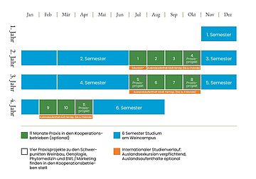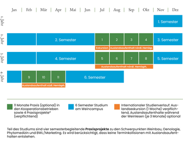 | Studienbeginn 1. Semester | November | Die Vorlesungszeit beginnt bewusst im November nach der Herbstphase, um auf die Arbeitsspitze in den Weingütern Rücksicht zu nehmen |